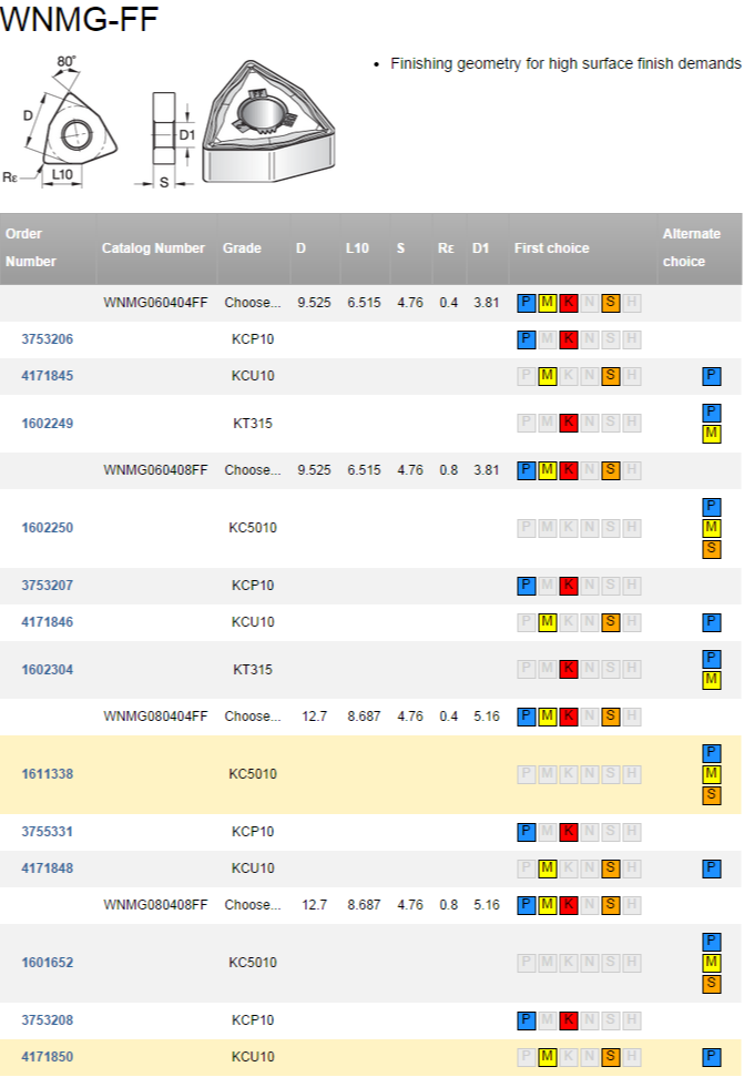 | WNMG080408FF | Choose... | 12.7 | 8.687 | 4.76 | 0.8 | 5.16 |